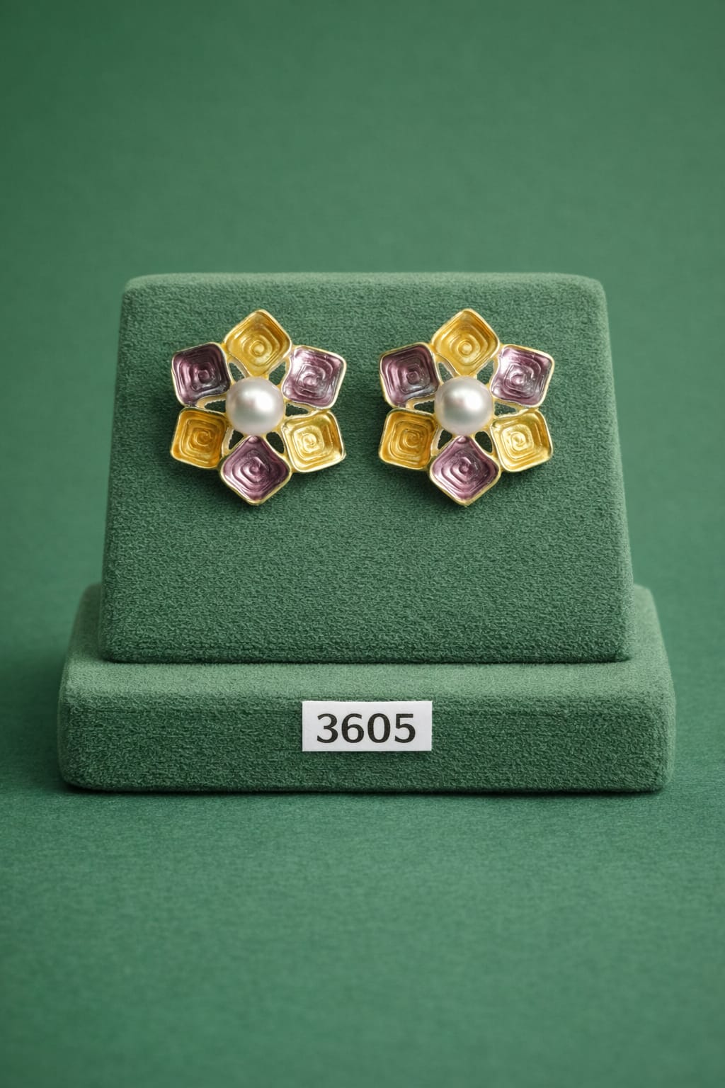 Elevate your everyday style with these Anti Tarnish Meena Stud Earrings, featuring a charming geometric floral design crafted in soft pastel tones. Each square petal is finished with smooth enamel detailing and beautifully arranged around a classic pearl centerpiece, creating a balanced blend of modern elegance and traditional artistry.