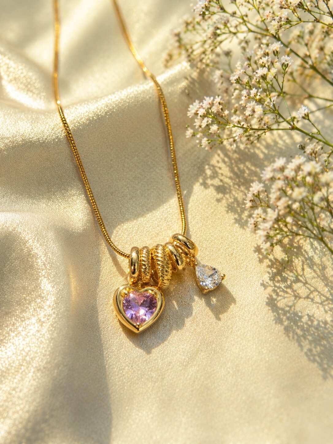 Be the first to review “Stainless Steel Heart Charm Pendant Necklace for Women | Anti-Tarnish Gold Finish | Pink Stone & Crystal Drop | Elegant Daily Wear Jewellery”